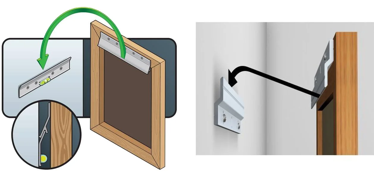 This system is widely used in galleries and museums because it supports the weight of the artwork evenly, is very secure, and makes it easy to hang your piece without worrying about crooked frames.