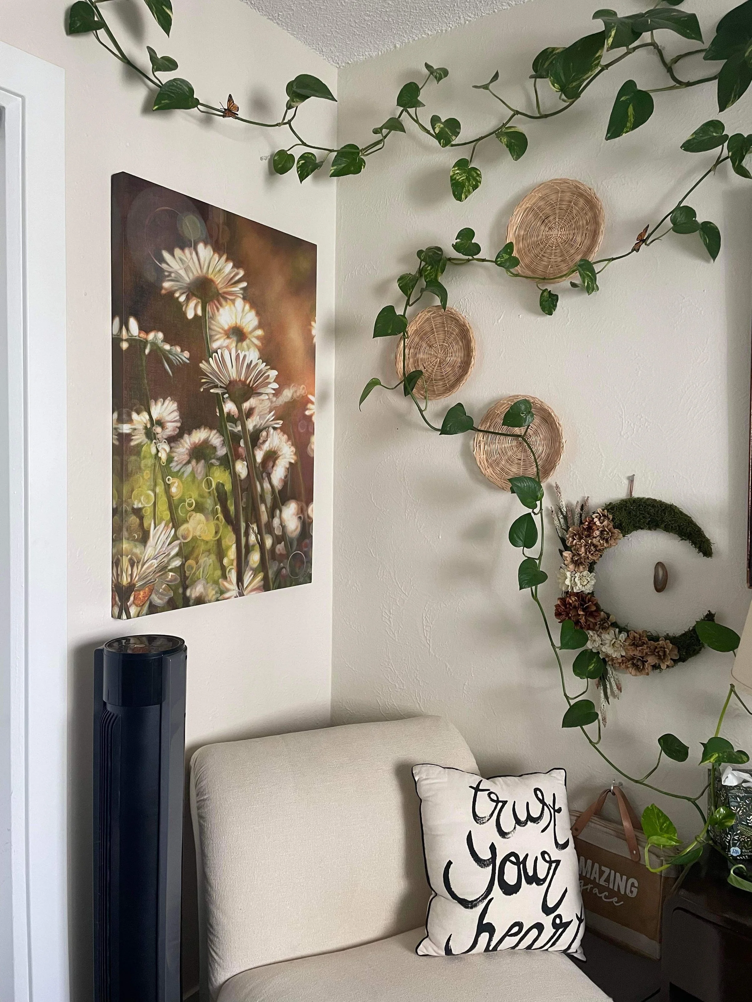 Your canvas comes ready to hang, complete with appropriate hardware for most traditional wall installations. For most artworks, a French cleat hanger will be used.